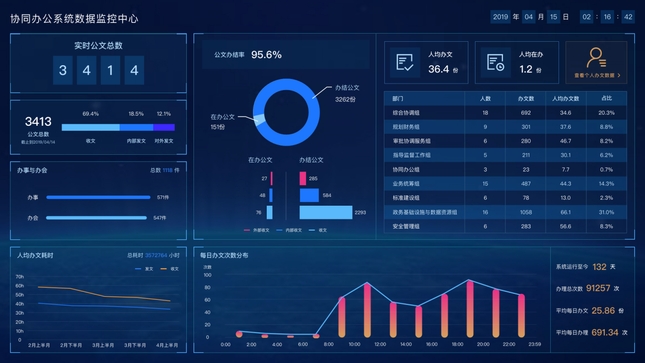 跟蹤監(jian)控(kong)公文(wen)的辦理(li)效(xiao)率、辦理(li)意見,提(ti)供(gong)公文(wen)效(xiao)能監(jian)控(kong)臺賬,支持多維度的公文(wen)效(xiao)能分析報表(biao),通(tong)過(guo)效(xiao)能分析了解工作瓶頸,提(ti)供(gong)決策支持數(shu)據,輔助優化辦公流程。